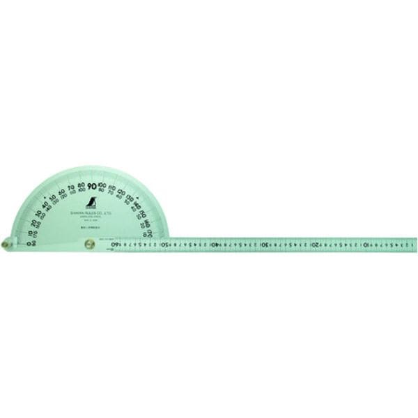 ・目盛はエッチングで刻み、黒クロムメッキを施してあるので取れません。・シルバー加工で表面の反射を抑え目盛が読み取りやすくなっています。・角度の測定やケガキ、長さ測定・直径(mm):320・竿厚さ(mm):825・全長(mm):825・半径(mm):160・分度板厚さ(mm):2.5・竿全長(mm):650・本体:ステンレス・ネジ:鉄・用途以外には使用しないで下さい。・生産国 日本・JANコード 4960910628557・質量 1350g・コード:159-1407 ・品目:62855
