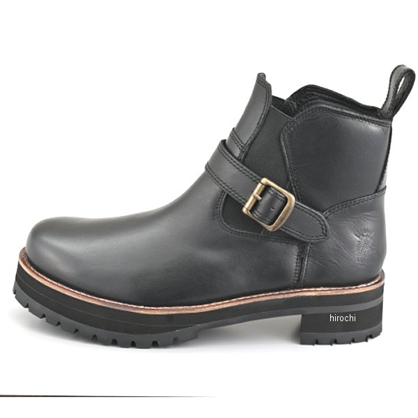 デイトナ サイドゴアブーツ HBS-008+ ブラック 25.5cmサイズ:25.5cmカラー:ブラック素材:アッパー部 牛革/内装 ポリエステル/ソール部 合成ラバースニーカー感覚で履けるライディングサイドゴアブーツ。伸縮性の高い布(ゴア)を履き口の両サイドに配し、シューレースがなくても足にしっかりフィット。かかとのタブを引けば、容易に脱ぎ履きできます。アッパーには軽量で柔らかく、履き始めから足になじみやすい牛革を採用。ソールは極厚仕様で足つきを考慮し、ヒール部はステップ操作がしやすい設計。シフトチェンジなどの操作もスムーズです。中央のベルトは3段階で調整可能で、フィット感を自在に調整できます。さらに、シフトパッドやくるぶしのクッションパッド、土踏まずの滑り止め加工など、ライディングに必要な機能をしっかり装備。内蔵パッドにより外観はシンプルで、街歩きでも違和感のないデザインです。教習所の指定要件である段付きソール、ひもなし、くるぶし以上の丈といった要件を満たしています。ワイズは2E相当です。※防水性能はありません。※ 23.5~24.5cmはレディースサイズです。