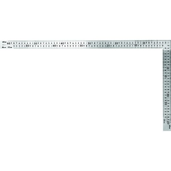 ・使いやすい内側基点目盛です。・しなりにくい2mm厚鋼材です。・寸法測定、材料への墨付け、ケガキ作業に。・長辺(mm):630・短辺(mm):330・幅(mm):30・厚さ(mm):2・目盛仕様:両面cm・長さの許容差:±0.5mm・直角度:100mmにつき0.1mm以下・ステンレス・生産国 日本・JANコード 4960910634138・質量 430g・コード:147-7624 ・品目:63413