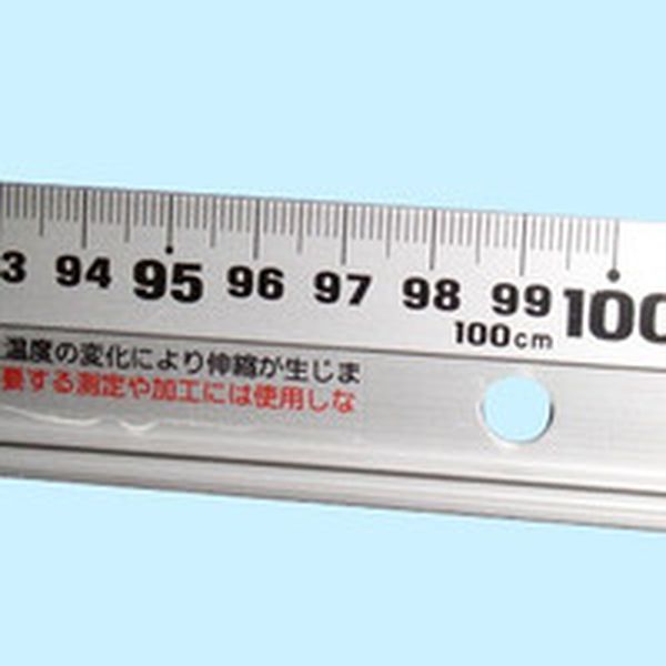 ・大きな目盛数字表示を採用しました。・軽くてさびず丈夫です。・カッティング面より高い危険防止壁付で、カッターの刃が滑っても乗り越えにくい形状になっています。・長さの測定・カッティング定規・溝引きとして。・全長(mm):1010・幅(mm):35・厚さ(mm):5・呼び寸法(mm):1000・目盛精度(mm):±0.4・真直度(mm):ー・色:シルバー・目盛:cm表示・長さの許容差:±0.40mm・本体:アルミ・滑り止め:スポンジ・アルミは温度の変化で伸縮しやすい為、精度の要する測定に使用できません。・生産国 中国・JANコード 4960910653825・質量 173g・コード:408-3601 ・品目:65382