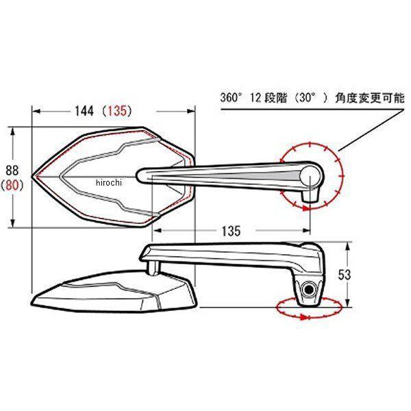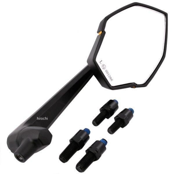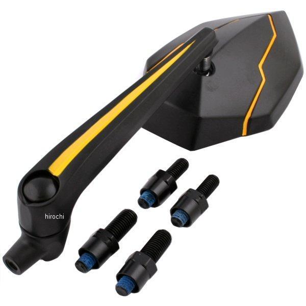 ランツァミラーです。汎用カラー : ブラック/イエローアルミ製左右共通1本販売曲面ミラー仕様M8/M10(正ネジ・逆ネジ)アダプター付属360° 12段階(30°)ステー角度変更可能'07保安基準適合品旧品番:675-1202020