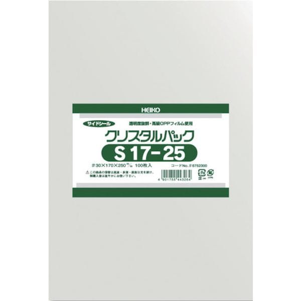 ・クリスタルパックはつやがあり透明感抜群の国産高級OPPフィルムを使用した袋です。・すべりが良く作業効率もバツグンです。・袋の両側を熱圧着して製造する為、のりしろが発生しないので中身が綺麗に見えます。・各サイズに合わせた包装・保護・保管・整理に最適。・色:透明・縦(mm):250・横(mm):170・厚さ(mm):0.03・OPPのシートを底で折り返し、袋の両側をヒートシール(熱圧着)して製造するため、袋にミミ(のりしろ)が発生せず、使用感がスマートです。・S(サイドシール)はテープが付いていない最もスタンダードなシリーズです。・OPP(二軸延伸ポリプロピレン)国産フィルム・生産国 日本・JANコード 4901755443264・質量 230g・コード:856-2696 ・品目:6752300S1725