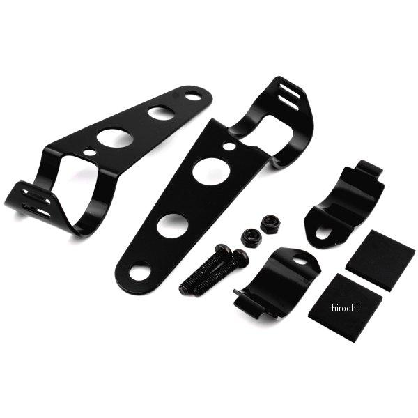 スチール製ヘッドライトブラケット。フォーク径φ30-φ39のフォークチューブに装着可能。ライト取付穴径φ10.5。左右1セット。黒メッキ・車種専用品ではありません。使用するヘッドライト等にあわせて車体に接触しない物を選択してください。