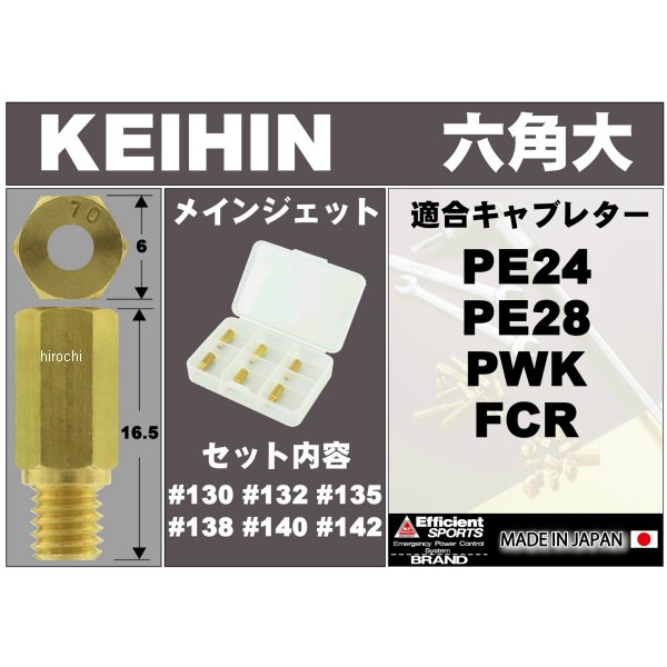 ポッシュ POSH 6オーバーメインジェットセットKEIHIN ケイヒン FCR/PE/PWK(セット内容)#130#132#135#138#140#142 各1コ入り(6pcs)(タイプ)(6X16.5)KEIHIN(ケイヒン)PWK(六角大)・専用ケース付き・オーバーサイズメインジェットセット チューンドエンジンや排気系を変更した場合、必要になってくるのがキャブセッティング。 まずはメインジェット&パイロットジェットの変更です。 たとえ1番手の差でも大きく性能を左右します。 それぞれの思い入れで変更した“Parts”に見合ったセッティングを可能にする オーバーサイズメインジェット&オーバーサイズパイロットジェットセット。 キャブレター数に応じたオーバーサイズをケース付きでセッティング。 厳選した国内メーカーにて製作致しておりますので加工精度もハイレベル。