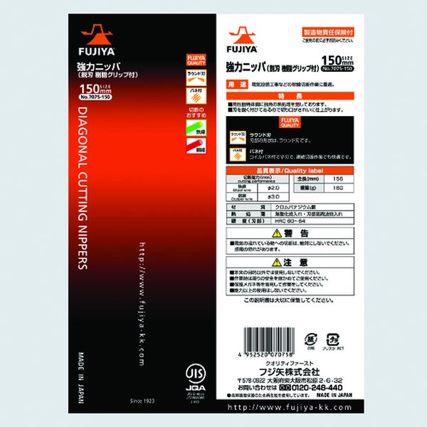 ・切れ味と耐久性のよい万能タイプのニッパです。・従来の強力ニッパより刃先を鋭利に加工しており、VVF線などをスムーズに切断できます。・交換用バネはFNS-8(5本入り)です。・作業性の良いバネ付タイプです。・内線、外線工事の電気設備工事などの電線の切断に。・全長(mm):156・切断能力(mm)鉄線:φ2.0・切断能力(mm)銅線:φ3.0・ばね付・ラウンド刃・JIS対応・ROHS対応・特殊鋼・グリップ:樹脂・能力以上の使用はしないで下さい。・電気が流れている物への切断は絶対にしないで下さい。・生産国 日本・JANコード 4952520070758・質量 170g・コード:369-3503 ・品目:707S150