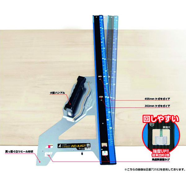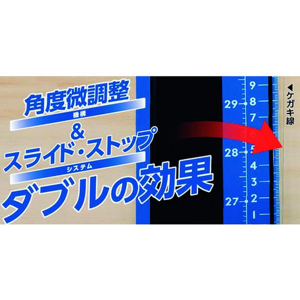・直角だけでなくミリ単位の細かい微調整切断が可能です。・キッチンパネルなどの薄い材料でも角度微調整突き当てがしっかり当たります。・ヒール形状でネジが直接地面に当たらず、電気丸ノコのコードも引っかかりません。・尺相当目盛とメートル目盛の併用目盛付です。・電気丸ノコ、ジグソー、トリマーなどの切断ガイドに。・全長(mm):762・幅(mm):350・厚さ(mm):83・呼び寸法(mm):600・90度方向(mm):600・有効切断長さ(mm):600・角度精度:100mmにつき0.1mm以下・直角精度:100mmにつき0.1mm以下・角度微調整範囲:ガイド先端が左に約24mm、ガイド先端が右に約21mm・本体:アルミ ガイド面:ステンレス・大型ハンドル:ABS樹脂、エラストマー樹脂・生産国 日本・JANコード 4960910731813・質量 1300g・コード:147-7597 ・品目:73181