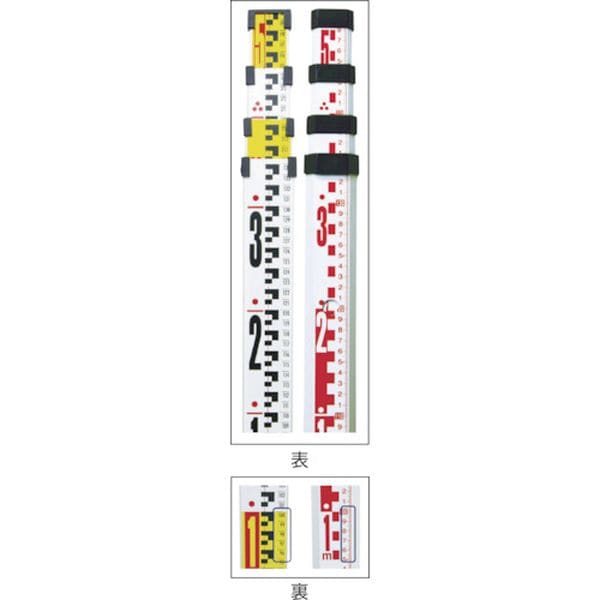 ・表面は10mmごとに読み取りやすい目盛線になっており、50mm毎に赤い目盛線になっています。・表面は1mごとに本体の色が黄・白の交互になっており、遠くから見てもすぐに何mなのか分かりやすくなっています。・裏面は基準から1mmピッチの目盛を採用し、外構などの測定にも便利です。・アルミ合金製で軽量、水にも強い構造です。・各段共通ロックボタンで、ワンタッチで取り外しができ、分解清掃が簡単にできます。・測量作業に。・タイプ(段):4・縮長~全長(mm):1489~5000・幅(mm):50・目盛表面:10mm目盛・目盛裏面:1mm目盛・縦長さ(mm):1489・全長(mm):1489・奥行(mm):1489・高さ(mm):27・表目盛:10mmピッチ、1mごとに本体色を黄・白色分け・裏目盛:1mmピッチの通し目盛付・本体:アルミ・ジョイント部:ABS樹脂・生産国 中国・JANコード 4960910732667・質量 1650g・コード:818-4196 ・品目:73266