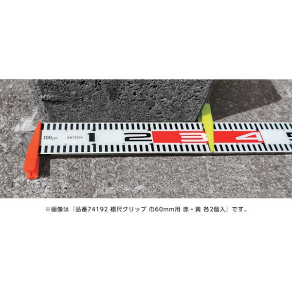 ・ゴムがなくても強く挟め、位置決めの突起で真っ直ぐに取り付けられる形状です。・測定物に付き当てられ、キワにも合わせやすい形状です。・標尺と合わせて写真撮りに使用します。・縦(mm):青 黄・本体:ポリプロピレン樹脂・エラストマー樹脂・バネ:ステンレス・生産国 中国・JANコード 4960910741911・質量 10g・コード:557-4593 ・品目:74191