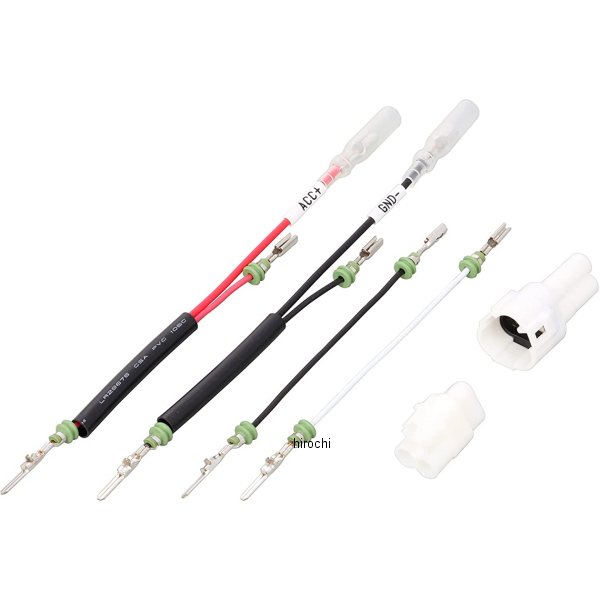 キタコ 電源取出しハーネス手作りキット汎用【セット内容】・MT 型防水カプラー(オス・メス)・電源取り出しハーネス(ACC +・GND -)各1 本・ハーネス 2本【仕様説明】・HM/MT型 防水カプラーに割り込ませて、生活必需品のモバイル携帯の充電や電装品等に必要な電源を取り出す電源取り出しハーネスをオリジナルで作成出来るハンドメイドアイテムです。・取り出しリード線には分かりやすい電源マークチューブ付き。※MT型防水カプラー用※消費電力、電流の高い製品(アンプ、コンプレッサー等)の接続には使用しないで下さい。※ハーネスのギボシ端子はCA/CB103(ホンダ)メスギボシを使用しています。※組付け前に電源を取り出すカプラーの配線を確認して下さい。