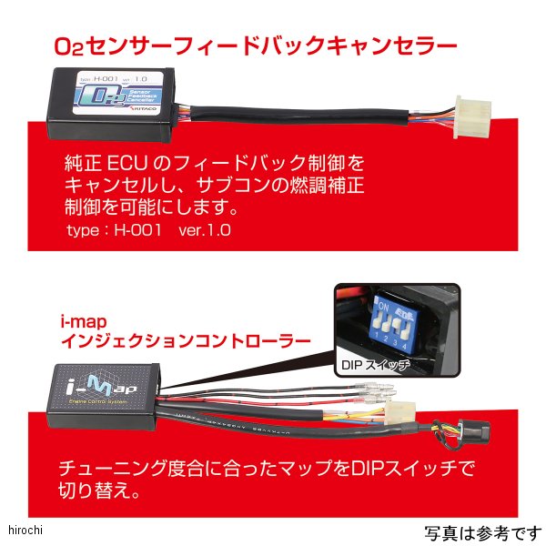 キタコ I-MAP+FBキャンセラーホンダ モンキー125(JB02)燃料噴射量を補正するFIコントローラーです。キタコ製パーツの組み合わせに対応する複数の最適マップをインストール済みで、ユーザーはI-MAPを取り付けた後、スイッチの設定でマップを選択します。(マップ数は車種により異なります。)また、キタコ製以外のパーツの装着やユーザーの好みに対応させるため、ユーザーオリジナルマップの作成も可能です。オリジナルマップの作成は別途PCインターフェイスケーブル(763-0500900)とwindows搭載のパソコンが必要です。新基準の排ガス規制対応車にも安定してI-MAPを作動させるO2フィードバックキャンセラーを付属。○配線加工不要〇O2フィードバックキャンセラー付属〇車種専用カプラーオンハーネス付属