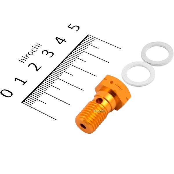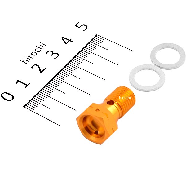 ユニオンボルトです。汎用カラー:ゴールドサイズ:M10x18xP1.25ワイヤーロック通し穴加工済バンジョーアルミワッシャ付属当社製オイルクーラーの取り出し部に使用している高強度のアルミ材を採用したユニオンボルトです。 定番の赤に加えてゴールドとブラックを追加ラインナップ補修用バンジョーアルミワッシャ2ヶ入