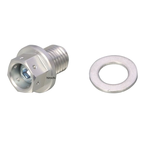 キタコ マグドレンボルト MD-1 M12/SL ・エンジン内の鉄粉を吸着でき、よりエンジンオイルをクリーンに保つことが可能です。・ネオジム磁石をネジ内部に収納する"セパレート構造"を採用。磁石を露出させないことで、万が一の劣化時にもエンジン内部に磁石の欠片が混入する心配がありません。・ワイヤーロック用穴付・サイズ:M12×15mm×ピッチ1.5・ネオジム磁石サイズ:φ5×4.6mm(組込済)・セパレート構造・アルミ削り出し・シルバーアルマイト仕上げ・補修用ドレンワッシャー(φ12)
