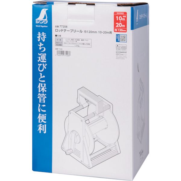 ・携帯に便利な肩掛けベルトが付いています。・リールを使用する事で、巻き取りと収納に便利です。・適合テープ幅(mm):120・適合テープ長さ(m):10、20・肩掛けベルト付き・ハンドル、板面:ABS樹脂・軸棒:アルミ・生産国 日本・JANコード 4960910772083・質量 1200g・コード:423-8579 ・品目:77208