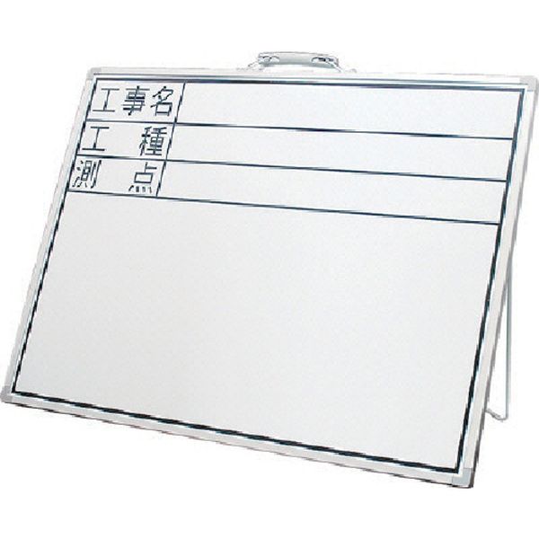 ・裏面スタンド付きです。・持ち運びに便利な取っ手付きです。・現場記録、写真撮影用・仕様印刷:工事名・工種・測点・横型・サイズ(mm):450×600・本体:スチール・枠:アルミ・ホワイトボードマーカー(黒)1本・黒板消し・ホワイトボード用マーカーをご使用ください。・生産国 中国・JANコード 4960910773325・質量 1800g・コード:816-4411 ・品目:77332
