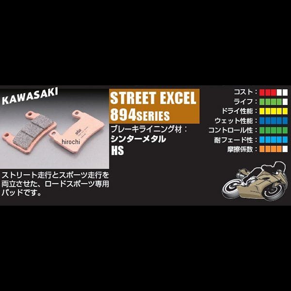 ストリートエクセルシンター 894HS SBSブレーキパッド13年-16年 カワサキ Ninja ZX-6R19年-26年 カワサキ Ninja ZX-6RパッドNo.:894HSパッドタイプ:HS・ストリートエクセル(シンター)ディスク数:ダブルディスク標準:シンターメタルフロントブレーキパッド入数:1キャリパー分こんな人にオススメ:街乗りからワインディングまで楽しむ人・持ちが良いパッドが好みの人ストリート走行とスポーツ走行を両立させた、ロードスポーツ専用パッド・適合はSBSパッドNO.をご確認下さい。その番号のラベルが付いたパッドをご購入下さい。・年式はあくまで参考です。また、適合はメーカー出荷時の適合を記載しています。一部の外車、逆輸入車は日本国内に入荷する際、キャリパー及び、パッドを変更する場合がありますので、それらの車両のブレーキパッドをお買い求めの場合は前もって、現物を確認してからご購入下さい。ご不明な点があればご連絡下さい。