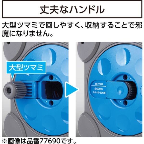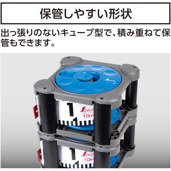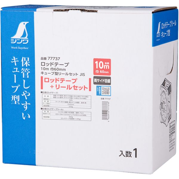 ・ロッドテープは、摩耗に強い、伸縮性が少ない、写真写りが良いです。・リールのハンドルは、左右どちらも取付可能で収納可能です。・ハンドルが収納できるので不意の落下時に破損しにくい、積み重ねて収納できます。・地面に置いたまま巻取りできます。・テープはワンタッチで着脱可能です。・現場撮影時の基準に。・全長(mm):202・幅(mm):194・厚さ(mm):121・目盛表面:タテ数字、両サイド目盛、20cm赤白、5mm単位・目盛裏面:ヨコ数字、片サイド目盛、1m赤白、5mm単位・奥行(mm):121・高さ(mm):202・テープ長さ(m):10・テープ幅(mm):60・テープ厚さ(mm):0.65・摘要:標準張力:50N・JIS規格品・(ロッドテープ)テープ:ガラス繊維・塩化ビニル樹脂 金具:鉄・(ロッドテープリール)ハンドル、板面:ABS樹脂 軸棒:アルミ・用途以外に使用しないでください。・生産国 日本・JANコード 4960910777378・質量 1595g・コード:713-1997 ・品目:77737