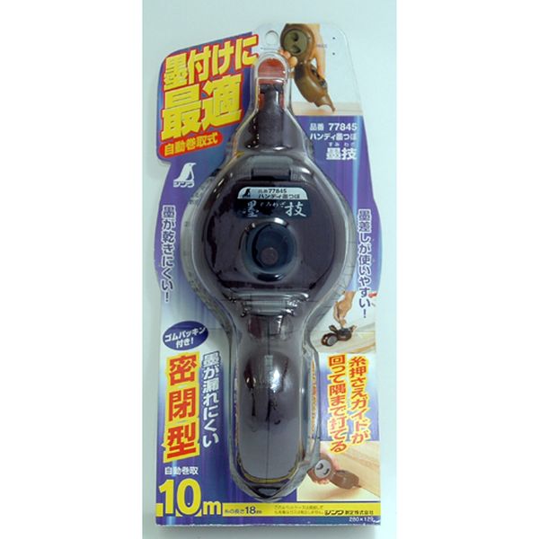 ・墨の打ち始めや墨が少なくなった時でも「墨付けボタン」を押しながら糸を引けば、濃く鮮やかな墨が打てます。・糸押さえガイドは90°毎にカチカチと回ります。・各種材料の墨つけに使用・糸の長さ(m):18・自動巻取り:10m・本体:ABS樹脂・ポリアセタール樹脂・バネ:ステンレス・自動巻取り時はカルコの針に十分注意してください。・生産国 中国・JANコード 4960910778450・質量 280g・コード:158-9869 ・品目:77845