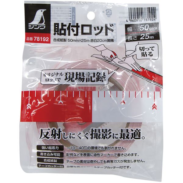 ・簡単に切って貼るだけでオリジナルのロッドが作れます。・反射防止加工。反射しにくく撮影時にくっきり写ります。・夏場、冬場でも安心で、-10から40℃の環境でも剥がれません。・油性マーカーで書き込めます。・裏面糊付のロッドテープです。・端材などに貼り付けてオリジナルのロッドが作れます。・全長(mm):25000・幅(mm):50・厚さ(mm):0.15・テープ:合成紙・カッター:スチール・テープカッター・テープカッターのお取扱いにはご注意ください。・生産国 中国・JANコード 4960910781924・質量 210g・コード:147-7596 ・品目:78192