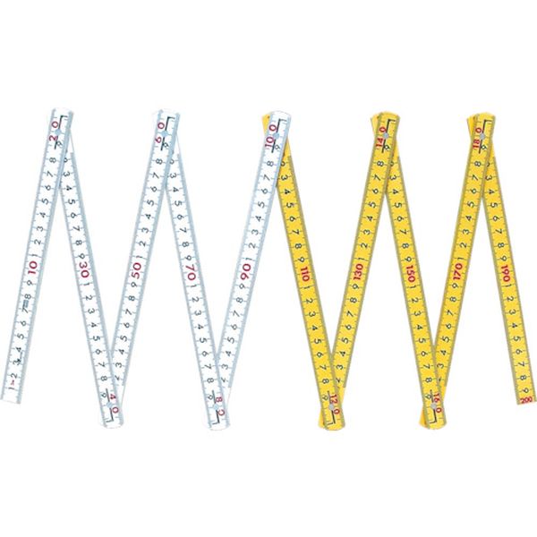 ・1m毎に色を変え、長さがわかりやすい仕様になっています。・軽くてサビない電気を通しにくいグラスファイバー入りです。・90°、180°でカチッと止まります。・携帯に便利な折りたたみ式です。・水に強いので目盛が消えません。・全長(mm):200・幅(mm):15・厚さ(mm):3.2・精度:±1mm(0~1000mm)、±1.4mm(1001~2000mm)・タイプ:ナイロン樹脂・全長(最大)×幅×厚さ(mm):2000×15×3.2(収縮時235×15×32)・目盛:メートル目盛・2m10折・赤数字入・ナイロン樹脂(グラスファイバー入)・汚れをシンナー等で拭くと目盛が消える事が有ります。・生産国 スイス・JANコード 4960910788336・質量 131g・コード:432-6962 ・品目:78833