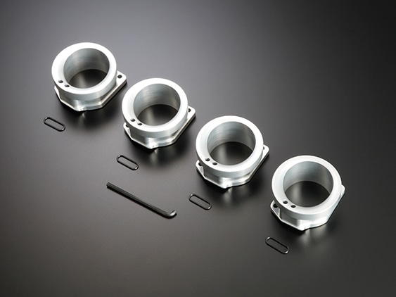 ヨシムラ フィルターアダプターTMR32用フィルター取付外径:Φ50口径:Φ32推奨フィルター:K&Nフィルター(RC-1820)(RC-1824)ヨシムラTMR-MJN/TMRキャブレターにフィルターを装着する為のアダプターでアルミ削り出し加工品です。従来のファンネル交換タイプのアダプターではパイロットエアジェットがメインボアの下側にあるためフィルターを通過したエアーを通す事ができませんでした。その為パイロットエアジェットのつまり等の心配がありました。ヨシムラのTMRフィルターアダプターは下部にパイロットエアジェットの通路を設けたことでメイン系/パイロット系両方をカバーします。カバーすることにより、ゴミのつまり防止とメイン系/パイロット系がそれぞれ同じ抵抗のエアーを吸入する事ができます。※ファンネルアダプターについているOリングは再使用します。※4個入り