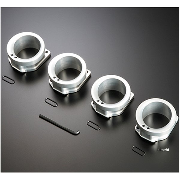 ヨシムラ フィルター アダプター口径:Φ40フィルター取付外径:Φ55ヨシムラTMR-MJN/TMRキャブレターにフィルターを装着する為のアダプターです。従来のファンネル交換タイプのアダプターではパイロットエアジェットがメインボアの下側にあるためフィルターを通過したエアーを通す事ができませんでした。その為パイロットエアジェットのつまり等の心配がありました。ヨシムラのTMRフィルターアダプターは下部にパイロットエアジェットの通路を設けたことでメイン系/パイロット系両方をカバーします。カバーすることにより、ゴミのつまり防止とメイン系/パイロット系がそれぞれ同じ抵抗のエアーを吸入する事ができます