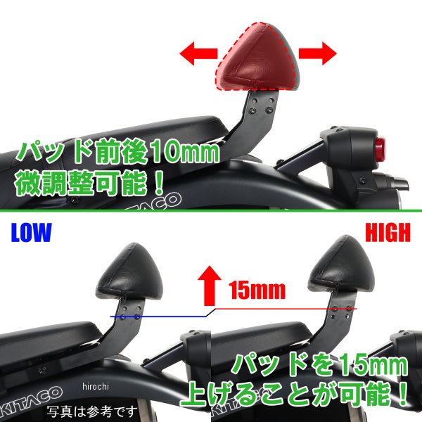 キタコ タンデムバックレストKITホンダ CL250(MC57)ホンダ CL500(PC68)二人乗車時でも安心して走行できるバックレストです。○ボルトオン○ステー:スチール製ブラック塗装仕上げ○パッド位置前後微調整可能〇パッド高さ15mmアップ可能○バックレストパッド寸法:幅310×高さ90×奥行100(mm)