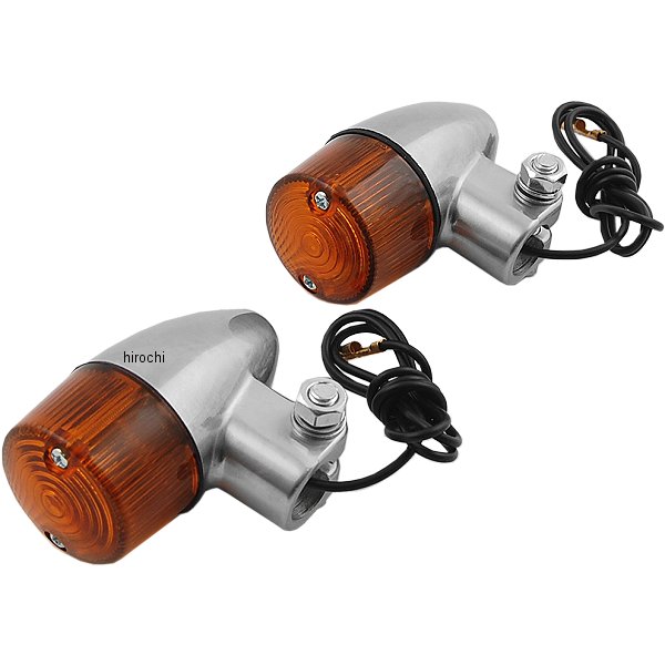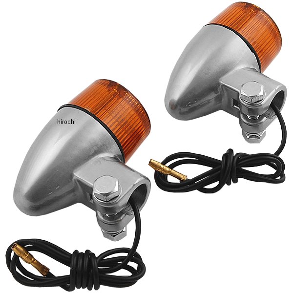 ・適合車種:汎用・ウインカー形状:ロケット・ミニウインカー・ボディカラー:アルミ・レンズ部カラー:アンバー・シングル球用・キット内容:2個1SET・備考:ウインカーバルブは別途必要です