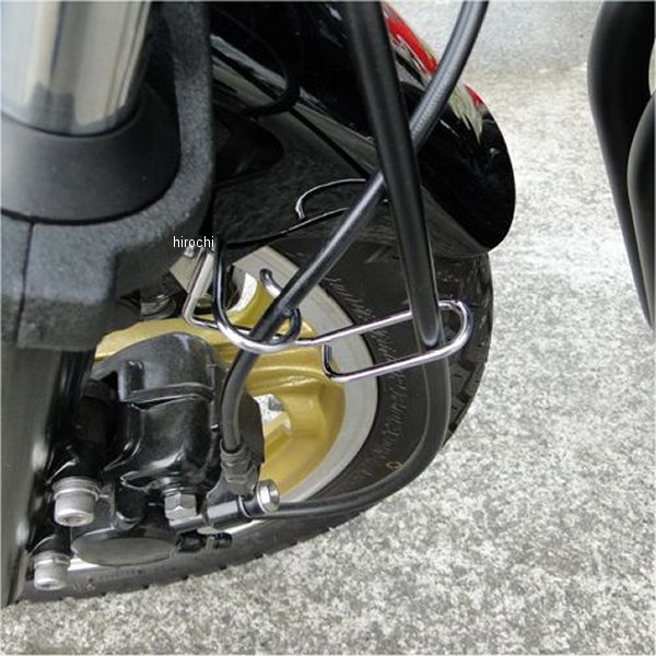 ビーアールシー BRC 左側用フロントブレーキホースブラケット STD79年-82年 カワサキ Z400FX E1~E4逆車のZ400J・Z550FXにも装着可能純正品番11034-1041純正品と同じ鉄製でクロームメッキ仕上げ。フロントフェンダーの左裏側に付いているブレーキホースを固定させるブラケットです。ほとんどのバイクが最初から付いていなかったりかなり錆びていたりしますのでフロント回りの必需品と言えます。純正品は現在生産中止になっておりこのブラケットが無いとブレーキホースとメーターケーブルがフロントフェンダーに干渉して傷が入るため重要な部品となります。FRPフェンダーに交換されている場合も同様です。取り付ければフロント回りがすっきりとまとまりバイクがきれいに見えます。尚、ダブルデイスクにしている方は別途専用も販売しております。※メーカー欠品の場合、長期納期となります。ご了承ください。