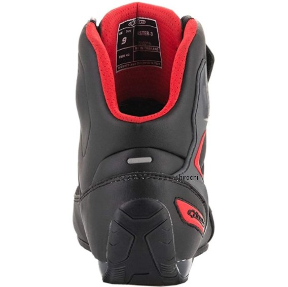 アルパインスターズ FASTER 3 DRYSTAR シューズ SHOEサイズ:9.5(27.0cm)カラー:ブラック/レッドフロー(1030)・先進の軽量性に優れたシームレス熱結合マイクロファイバーとPUスエードを組み合わせた透湿防水ライディングシューズ。・スポーツ走行、街乗り、そしてツーリング中の突然の雨でも安心な透湿防水仕様は幅広いライディングスタイルに対応。・かかと、つま先にはTPUインナープロテクション、そしてくるぶしにはTPR素材で補強したバイク用シューズ。・CE規格
