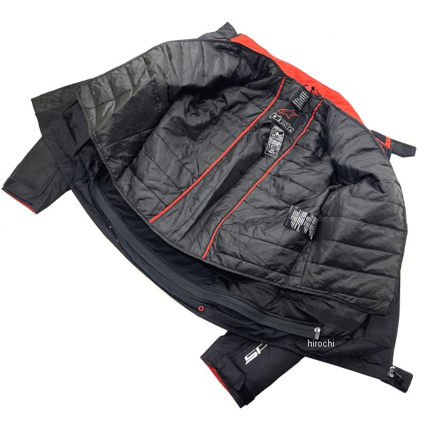 アルパインスターズ T-SP S ウォータープルーフ ジャケット ASIAサイズ:Lカラー:ブラック/レッドフロー・長袖防水ライナー(サーマルライナー)を標準装備し秋冬はもちろん、取り外すことにより春夏にも仕様可能・防水仕様・袖、ウエストにはバタつき防止とフィット感を調節可能なアジャスター付き・袖形状は人間工学に基づき立体縫製されスポーツライディングに最適な設計・肩、肘にはBIO FLEX PLUS(バイオフレックスプラス)インナープロテクターを標準装備(取り外し可能)・胸部、背中には別売りのNUCLEONプロテクター装着可能・防水インナーポケット付き・CE規格