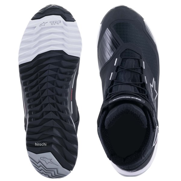 アルパインスターズ CR-X DRYSTAR ライディングシューズサイズ:7カラー:ブラック/ホワイト(12)【特徴】・ライディング操作性とタウンユースの柔軟性を両立した軽快・快適シューズ。・アルパインスターズ独自の透湿防水フィルムDRYSTAR®を採用した防水モデル。・つま先にはTPUインナープロテクション、くるぶしにはTPR素材で補強した安全性にも妥協を許さないバイク用シューズ。・デュアルコンパウンド ラバーソール採用の多層EVA構造ソールで高い可動性とクッション性を両立。・新開発の3層構造ミッドソール。・左右独立弾性ソール。・CE規格