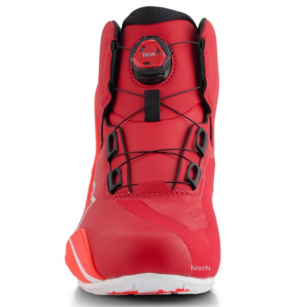 アルパインスターズ 春夏モデル シューズ FASTER-4 BOA SHOES ASIAサイズ:8.5カラー:321 レッド/ホワイト/ブラック・先進的なマイクロファイバーとシームレスな熱溶着パネルで構成されたメインアッパー素材が、革新的でテクニカルなロードライディングシューズを生み出している。・通気性に優れた3D メッシュのライニングと、かかと部分の滑り止めマイクロスエード。・ソフトなマイクロファイバーを使用したかかとまわりの屈曲ポイントを追加することで、動きやすさと保護性を向上。・内側クォーターは、ソフトなTPU エリアと専用のシームレスコンバインが安定性を提供。・ソフトなテキスタイルで作られた後襟は、背屈時の快適性を高めている。ふくらはぎ外側のユニークなTPR とつま先のスライダーディテールが組み合わされ、サポート性、保護性、屈曲性を高めている。・BOA クロージャーシステム採用。