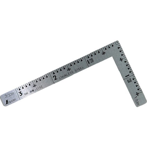 ・安価な曲尺です。・小型で使い勝手が良く携帯に便利です。・長さの測定、直角の確認やケガキ作業に。・長辺(mm):105・短辺(mm):55・幅(mm):10・厚さ(mm):1.2・目盛仕様:寸目盛・長さの許容差:±0.2mm以下・直角度:100mmで±0.1mmを超えない・精度直角度:100mmにつき、0.1mm以下・ステンレス・電気に触れる恐れのある場所では使用しないで下さい。・生産国 日本・JANコード 4960910121027・質量 14g・コード:816-3837 ・品目:12102