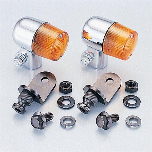 ・適合車種:エイプ50/エイプ50(AC16全車種)、エイプ100/エイプ100(HC07全車種)、モンキー/MONKEY、ゴリラ/GORILLA (FNO.Z50J-2000001-/FNO.AB27-1000001-)・適合ヘッドライト:KITACO製4-1/2ヘッドライトKIT用・カラー:ボディ/クローム塗装・レンズ/オレンジ・内容量:左右セット・付属:12V10W球付属・備考:ステム部取り付けタイプです02年-08年 ホンダ エイプ10001年-07年 ホンダ エイプ50
