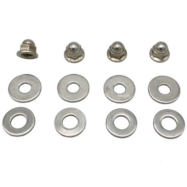 ポッシュ POSH SUSナットセット リヤショック用ホンダ クロスカブ50(AA06-100)ホンダ クロスカブ110(JA45-100)ホンダ スーパーカブ50(AA09-100/110)【セット内容】フランジ付袋ナット:M10 P1.25 ×4個平ワッシャ:10.5×28 ×4個平ワッシャ:12.8×25.5 ×4個【仕様説明】サビに強いステンレス製フランジ付袋ナット及びステンレス製平ワッシャーをセットにした1台分のリアクッション用ナットセットです。
