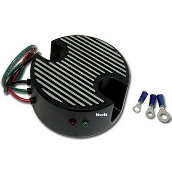 ガッツクローム レギュレーターエンドカバー純正、サイクルエレクトリックジェネレーター用【チャージランプ】緑のみ点灯:ジェネレーターが正常に作動している状態赤のみ点灯:ジェネレーターが正常に作動していない状態(点検、修理が必要)緑、赤どちらも点灯:チャージしている状態。(この状態が長時間続く場合、点検、修理が必要)緑、赤どちらも消灯:ジェネレーターが作動していない状態※イグニッションONの時【配線】緑線:ジェネレーターの「F」(FIELD)へ赤線:ジェネレーターの「A」(ARMATURE)ヘ黒線:バッテリーのプラスへカラー:ブラック※配線の作業は必ずバッテリーのマイナスを外して行ってください。