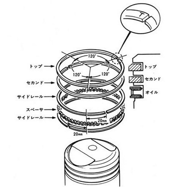 ビーアールシー BRC ピストンリングセット(ノーマル)89年-95年 カワサキ ゼファー400全機種※ゼファーχには取付不可純正対応品番:13008-1051/92033-10501台分4個セットこのピストンリングに対応するピストンサイズは55.0mmでノーマル用となります。このピストンリングは帝国ピストンリング製(日本製)となりますので安心して使用できます。この商品の特徴はタペット調整やバルブのすり合わせをやっても圧縮が上がらない場合、ピストンリングを交換をされると思いますが、このピストンリングは張力が特に強いため、純正のピストンリングに比べ圧縮が確実に上がります。【注意/警告】・ピストンリングはトップとセカンドが厚みが同じですので間違がわないようにご注意下さい。・トップは茶色で縁取りがあるタイプでセカンドは黒っぽい方です。・オイルリングの蛇腹は横から見て切れ目に山型と谷型があり山になるように切れ目を合わせて下さい。・オイルリングはまず蛇腹を入れてから薄いリングを上と下に入れて下さい。・順番通りに入れないと全く入りませんので必ず順番を守って入れて下さい。・古いピストンリングを外した後、溝のカーボン(汚れ)を完全に落とさないとリングがスムーズに入りませんのでご注意下さい。このピストンリングは純正のピストンリングに比べリングの張力が非常に強く単体で見ると合口の隙間がかなり広いのが特徴です。組み込んでしまえば合口の隙間は純正規定値になりますが、この高い張力により気密性が上がるため、純正のピストンリングに比べ圧縮が確実に上がります。またオイル上がりを長期間にわたり防止する要因にもなっております。高張力で合口の隙間が大きい事によりシリンダースリーブへの挿入難易度は純正に比べ困難になりますが製品不良ではございませんので予めご理解いただきますようお願い申し上げます。入れずらい事で有名なワイセコのピストンリングも同じTP製です。※メーカー欠品の場合、長期納期となります。ご了承ください。