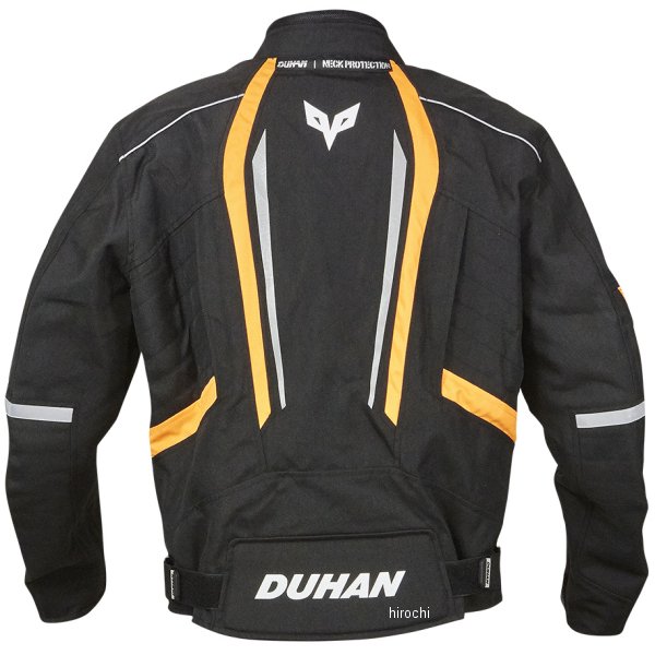 NBS バイクパーツセンター DUHAN ウインドプロテクション ライディング ジャケットサイズ:XLカラー:黒×オレンジ標準装備プロテクター:肩、肘、背、腰オールシーズン対応、着脱式インナーウェア装備!ライディング時、走行風によるバタつきを抑えると共に、洗練されたスマートなシルエットを演出するアジャストタブ。肩と背中についているファスナーで通気性の調節が可能です。どんなバイクにも合うシンプルながらスタイリッシュなデザイン。左右にファスナー付のポケット装着。ウエスト部にアジャスター式ベルクロを装備することで、幅広い調整を実現。合わせて走行風の浸入も防止します。【DUHANの特徴】DUHANは1999年に設立され、ライダーとモーターサイクルの為の開発と製造に取り組んでいます。高い技術力で通気性、防水性、耐久性に優れています。