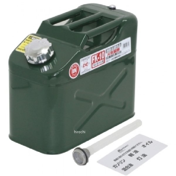 NBS バイクパーツセンター ガソリン携行缶 10L容量10L材質本体…亜鉛メッキ鋼板キャップ…アルミダイキャストノズル口金・エアー調整ネジ…アルミダイキャストノズル…HDPE塗装粉体塗装鋼板の厚み0.8mm本体サイズ/重さ約347(W)×280(H)×176(D)mm約2.7kg