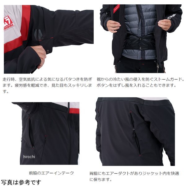 ヨシムラ クシタニ ガルジャケットサイズ:Mカラー:ブラックアウト【素材】表:ポリエステル87%、ポリウレタン13%(TPUラミネーション/生地初期耐水圧10,000mm以上,透湿性10,000/m2/24h)ライン/ナイロン100%、別布/ポリエステル87%、ポリウレタン13%裏:ポリエステル100%(メッシュ)インナー/表:ポリエステル100%、別布/ナイロン100%インナー/中綿:ポリエステル100%(シンサレートTMフェザーレス)インナー/裏:ナイロン100%【仕様説明】伸縮性のあるソフトシェル素材を採用したフードスタイルウインタージャケット。袖下・右脇には立体感のあるスプレット柄エンボスを施した生地を採用しています。脱着式防寒インナーの中綿には軽く保温性の高いダウンライクを使用。【機能】・防水/撥水素材・防風、透湿・リフレクト・消臭・エアーインテーク・エアーダクト・インナー脱着・バタつき防止・ストームガード・内ポケット※プロテクターは付属しておりません。(クシタニ別売)※装着可能プロテクター(クシタニ品番):肩肘/K-4360、K-4464、K-4604、K-4363 背/K-4363、K-4361 胸/K-4395、K-4409、K-4452