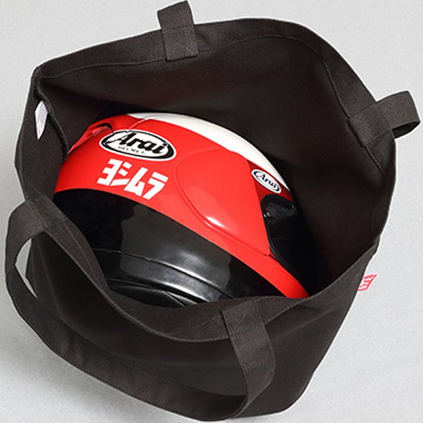 ヨシムラ トートバッグ I've Got The Power素材:綿100%サイズ:約W480mm × H400mm × D150mm持ち手サイズ:約W30mm × L600mm容量:約19Lコットン100%、厚手で丈夫な12オンスの平織り生地を使用しています。 船底型のマチを採用し、一般的なサイズのオンロードヘルメットの収納も可能なたっぷりめのサイズです。