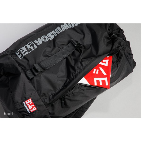 ヨシムラ デイパックカラー:ブラック素材:ナイロン100%表面:はっ水加工裏面:防水加工パッカブル仕様(コンパクトに持ち運べます)※縫い目やファスナー部分より浸水する場合があります。折りたたんで持ち運びのできるパッカブル仕様。荷物が増えた際のサブバックとしても活躍します。