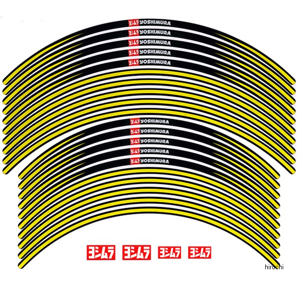 ヨシムラ リムステッカー タイプAカラー:イエローステッカーライン幅:7mm【適合ホイールサイズ】フロント:21インチリア:18インチ‐19インチ【仕様説明】UVカット加工貼りやすい片面4分割タイプ車両1台分=20枚入り(前後左右の計4面分 16枚+予備4枚)ヨシムラロゴ4枚(ホイールの形状によっては貼れない場合がございます)位置決めの際の貼り直しが行いやすく、シワにもなりにくい厚手のシートを採用。