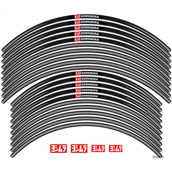 ヨシムラ リムステッカー タイプAカラー:グレーステッカーライン幅:7mm【適合ホイールサイズ】フロント:21インチリア:18インチ‐19インチ【仕様説明】UVカット加工貼りやすい片面4分割タイプ車両1台分=20枚入り(前後左右の計4面分 16枚+予備4枚)ヨシムラロゴ4枚(ホイールの形状によっては貼れない場合がございます)位置決めの際の貼り直しが行いやすく、シワにもなりにくい厚手のシートを採用。