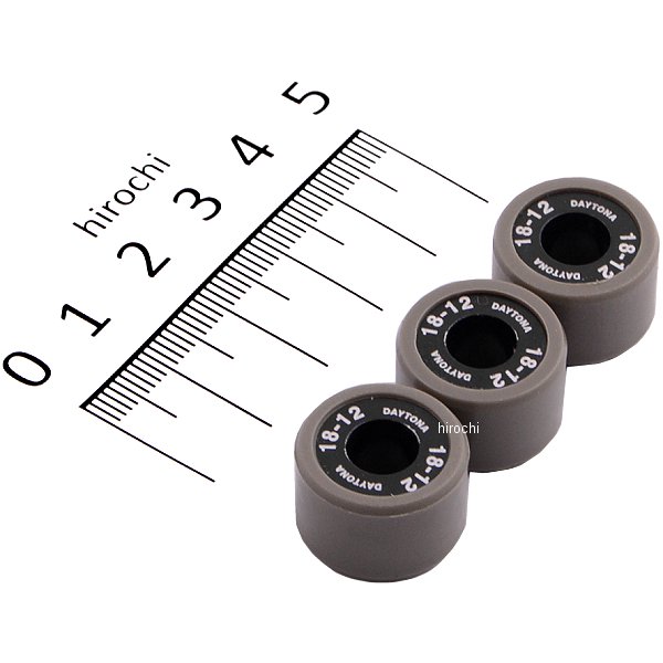 デイトナ DWRウエイトローラー 18×12 5.0g98年-08年 ヤマハ グランドアクシス※スズキ車用P.A.スーパープーリーキット(45435)のセッティング用としても使用可能。製品個体差により、サイズ・グラム数などの刻印が見え難い場合があります。予めご了承ください。一体成型品ですが、樹脂部が磨耗した状態でのインナーメタル抜けを保証するものではありません。 交換時は必ず慣らし運転を行い、その後も適切なタイミングで定期交換してください。外径サイズなどをよくお確かめの上、適切なサイズの商品をお買い求めください。