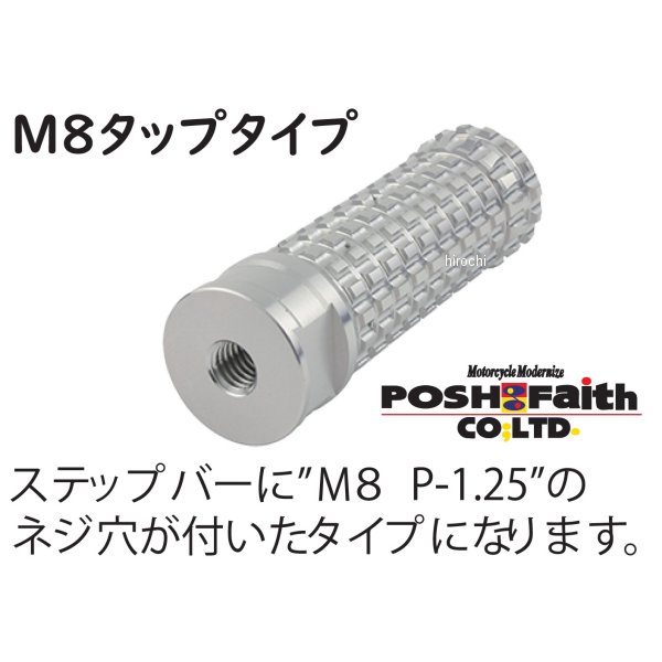 ポッシュ POSH アルミマシンドステップバーモールド [エグリ] M8タップ タイプカラー:シルバーアルミ削り出し/アルマイト仕上げ2本入り樹脂製エンド付属日本製【仕様説明】アルミ削り出しのステップバー、バックステップの補修やドレスアップ等にご利用ください。ローレットタイプは細かいエッジの効いたローレット加工を施しライダーの足元をしっかりとしたグリップ力でサポートします。ラインナップは表面仕上げ2種[ローレット][モールド]、ステップ形状2種[ストレート][エグリ]、取り付け部分2種[M8貫通穴] [M8タップ]タイプをご用意しています。