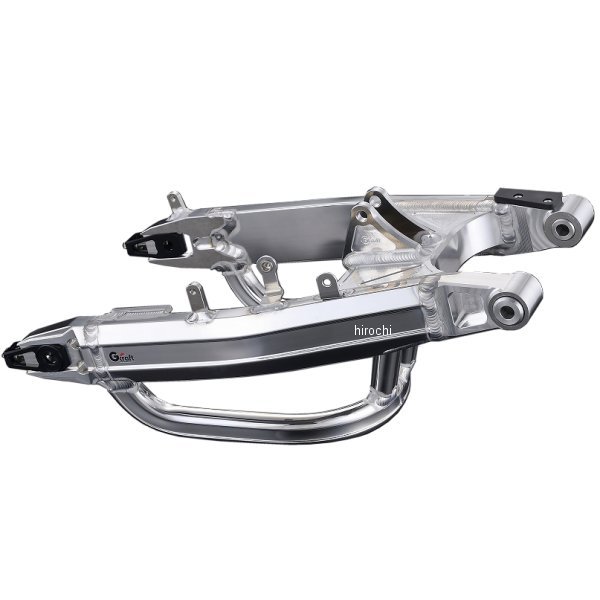 Gクラフト トリプルスクエアミドルスイングアーム +10cmロング スタビ付き21年以降 ホンダ グロム(JC92)トリプルスクエアミドル(60mm×25mmのパイプ)材質:アルミ7N01材【仕様説明】純正スイングアーム3.5kg に対して1.8kg (スタビなし、純正長の場合)と軽量かつ高剛性に仕上げてあり、バネ下重量の軽量化によりオートバイの操作性を向上させます。チェーン引きは後ろ引きタイプを採用し、整備性を向上させました。ピボット部はベアリング仕様、交換式チェーンスライダーが標準設定。左右のパイプの連結部、またサスペンションのマウント部のセンター部分は軽量化、剛性などのバランスを考慮して、ビレット構造を採用。※写真のスイングアームはオプションのフェンダーステー、ブレーキホースクランプを追加した仕様です。※写真はスタビ付きスイングアームです。※画像は試作品の為、肉抜き形状が変更する場合があります。【推奨チェーンリンク数】+0cm:変更無し+6cm:120+10cm:130※お使いのスプロケットの丁数によって変わります。チェーンカッターなどで調節してください。※+6cm、+10cmの場合は車高によってはタイヤとナンバープレートが鑑賞するおそれがあります。