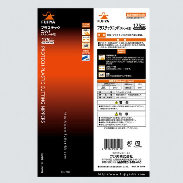 ・最先端技術「マイクロミラーブレード」で切断能力が20%アップしています。・プラスチック成型後のゲートの切断作業、バリ取り作業に最適です。・プラモデル・プラスチック成形品のゲート切断・バリ取りに。・全長(mm):183・切断能力(mm)樹脂:φ6・ストレート刃・薄刃・ソフトカバー付・抗菌グリップ・ROHS対応・刃部鏡面仕上げ・特殊鋼・グリップ:樹脂・能力以上の使用はしないで下さい。・電気が流れている物への切断は絶対にしないで下さい。・生産国 日本・JANコード 4952520009178・質量 190g・コード:276-3346 ・品目:90A175