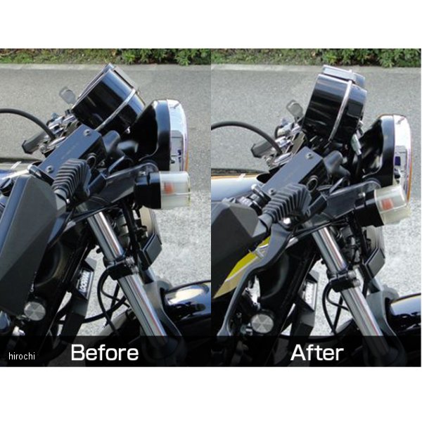 ビーアールシー BRC メーターアップ用ブラケット(メーターアップステー)79年-82年 カワサキ Z400FX E1~E479年-82年 Z400J79年-82年 Z550FX逆車等でメーターとメーターの間に燃料計が付いているタイプには装着できません。材質は純正品と同じ鉄製で厚みも純正品と同じ厚めの3ミリで強靭な作りとなっております。メーターアップするとだれでも簡単にFXをカッコ良くできます。今まで簡単な板ステイで延長してアップすると延長ステイやねじ山部分が外から見えカッコ悪い状態になるため、純正品と同じように一体型で製作しました。取付は今付いている物と交換するだけですので簡単に装着できます。加工等は一切必要ありません。特に角度には拘っていろいろな角度の見本を作り、繰り返しテストを重ね、だれが見ても一番カッコいい角度にしております。注意/警告純正のヘッドライトステイが付いている場合のみ、メーターケーブルがライトケースに干渉してケーブルの曲がる角度がかなりきつくなり、ケーブルが切れやすくなります。またケーブルがかなり曲がる関係からメーターの動きが遅くなりますので、ご理解ご了承下さい。そのため、純正より長い社外品のライトステイに交換することをお勧め致します。メーターアップした時にタコメーターケーブルのみアップした分、パツパツになりますので交換時に必要ですが、商品には付いておりませんので別売りとなっております。必要な方は追加注文をして下さい。別売り。対策用ロングスピードメーターケーブル。ロングタコメーターケーブル※メーカー欠品の場合、長期納期となります。ご了承ください。