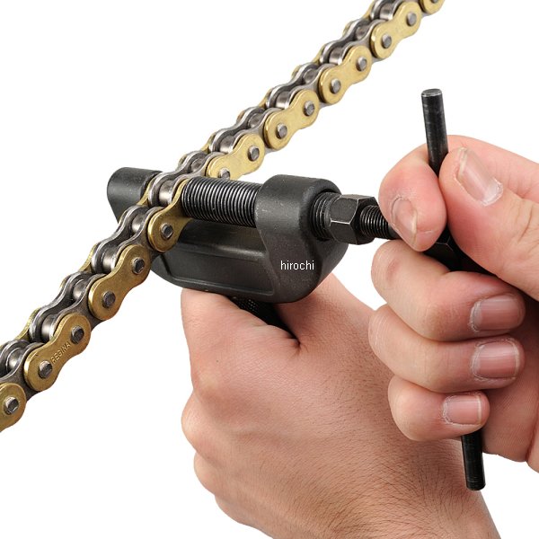 デイトナ チェーンカッター&カシメツールキット収納ケースサイズ:幅225x奥行120x高さ40mm対応ドライブチェーンサイズ:415、420、425、428、520、525、530、630収納用ブローケース付520以上のチェーンをカットする際には、ドライブチェーンのリベットピンをサンダーなどで削ってから使用してください。カット、圧入、カシメは、ゆっくり慎重に作業してください。工具がずれると破損の原因となります。カッターピン、リベットピン、スプリングは消耗品です。摩耗や変形が見られたら、補修品をお買い求めください。ドライブチェーンのカットとカシメができるセットオートバイ用ドライブチェーンとして、多くの車種に使用されているサイズに対応しています。消耗品に対して個別に補修品を設定しています。